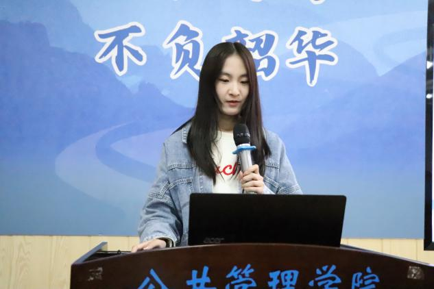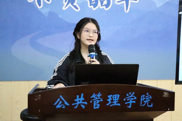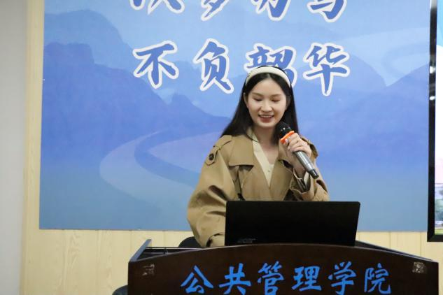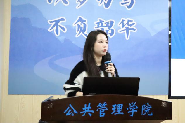 韦缌儀从推免条件、保研规划、经验总结三个方面展开分享。她强调成功上岸的重要因素是“规划”与“信息差”,并以自己大学四年的学业规划为在座同学提供参考。她认为同学们要以高标准来严格要求自己,不论是认真完成每一次小组作业,还是在科研竞赛中越战越勇,都是锤炼自身能力的宝贵机会。韦缌儀勉励在场同学以清晰的目标引领方向,以踏实的努力铺就前路,勇敢攀登学术与人生的高峰,真正成为“有规划、有目标的公管人”。