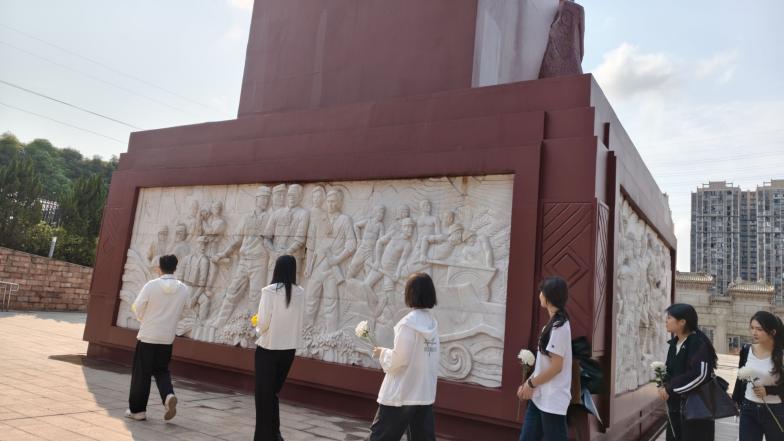 默哀结束后,《献花曲》响起,无码影片 同学缓步抬送花篮走向烈士纪念碑,将花篮郑重敬献于碑前,陈科旭老师上前整理花篮缎带。随后全体师生有序瞻仰烈士纪念碑,深切感悟革命先烈的奉献精神。