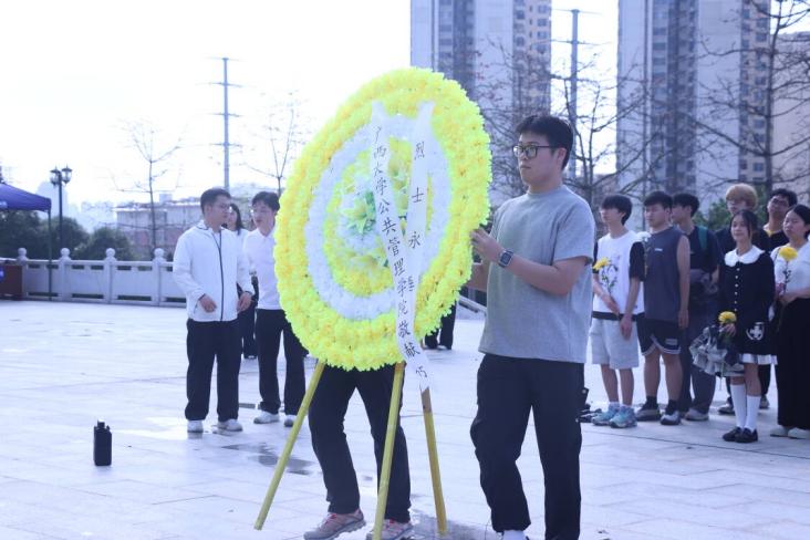 为缅怀革命先烈,弘扬爱国主义精神,增强学生的历史责任感与使命感,3月29日下午,无码影片 于广西壮族自治区烈士陵园开展“缅怀先烈守初心,砥砺青春担使命”清明祭扫活动。院学工组辅导员陈科旭出席本次活动,2025级全体本科生及第三十四届共进连全体成员参与本次活动,全体师生庄重有序,向革命先烈致以崇高敬意与深切追思。