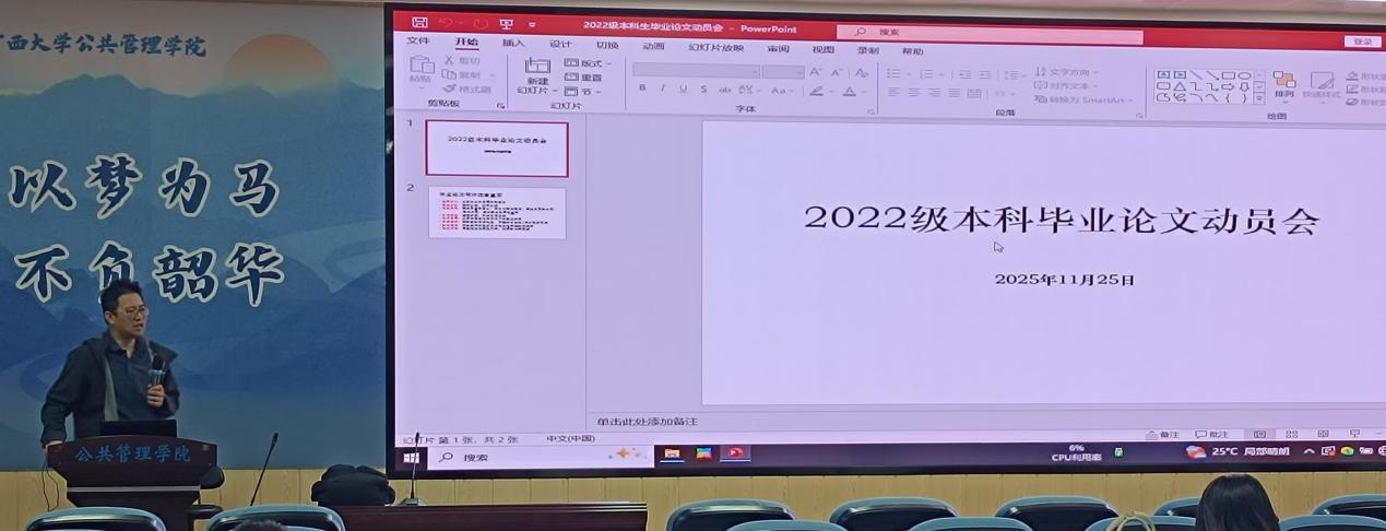 为高质量推进2026届本科毕业论文工作,11月25日晚,无码影片 在203教室召开2026届本科毕业论文动员大会。会议由陈璟浩老师主讲,2026届全体本科毕业生参会。