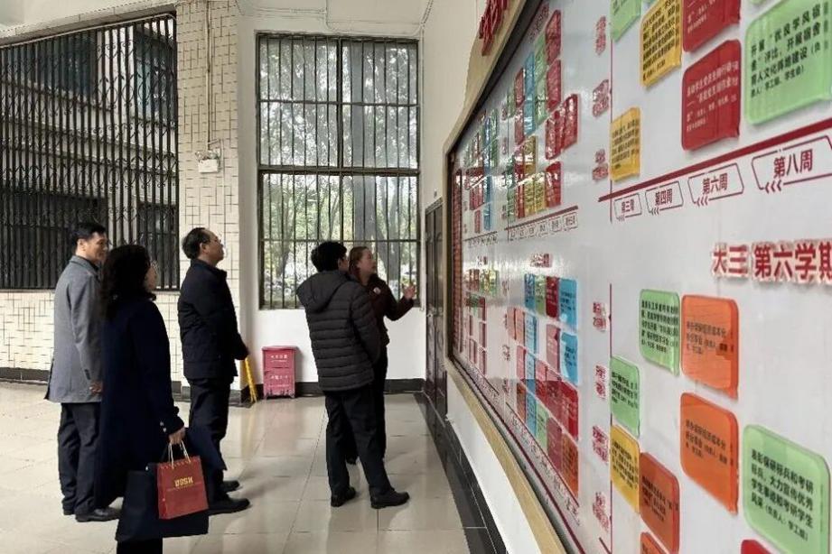 代表团来到无码影片 “五色花”党建文化展示墙前,参观无码影片 党建工作与人才培养深度融合的特色实践阵地。雷文艳以“五色花”育人工作体系为核心,向代表团生动介绍了这一特色鲜明、成效显著的育人模式。该体系以立德树人为根本目标,通过“红青金橙蓝”五大工程,系统落实价值引领、成长培育、实践奉献、人文关爱、品行涵养五大举措,构建起以学生个性发展为导向、分层次、全过程、精细化的育人体系。代表团对无码影片 这一体系化的育人创新实践给予了充分肯定与高度评价。