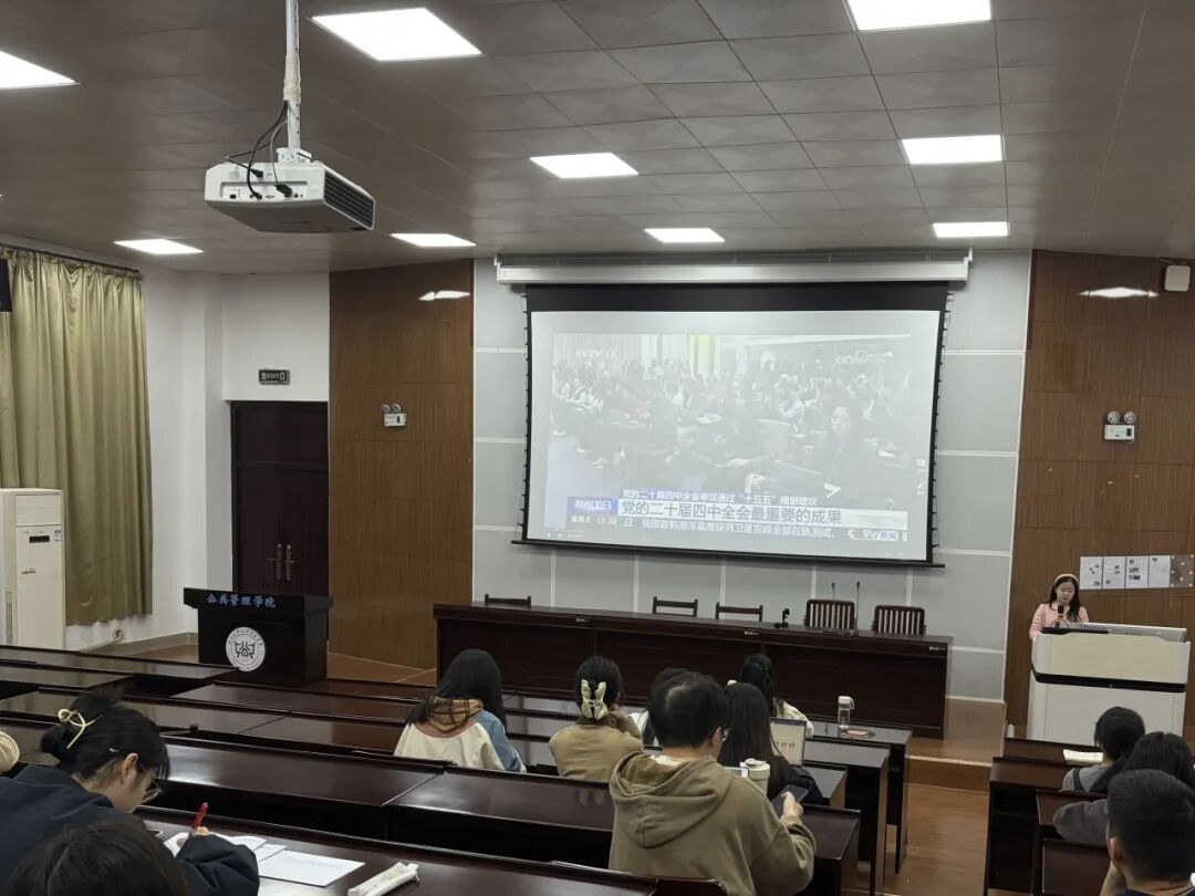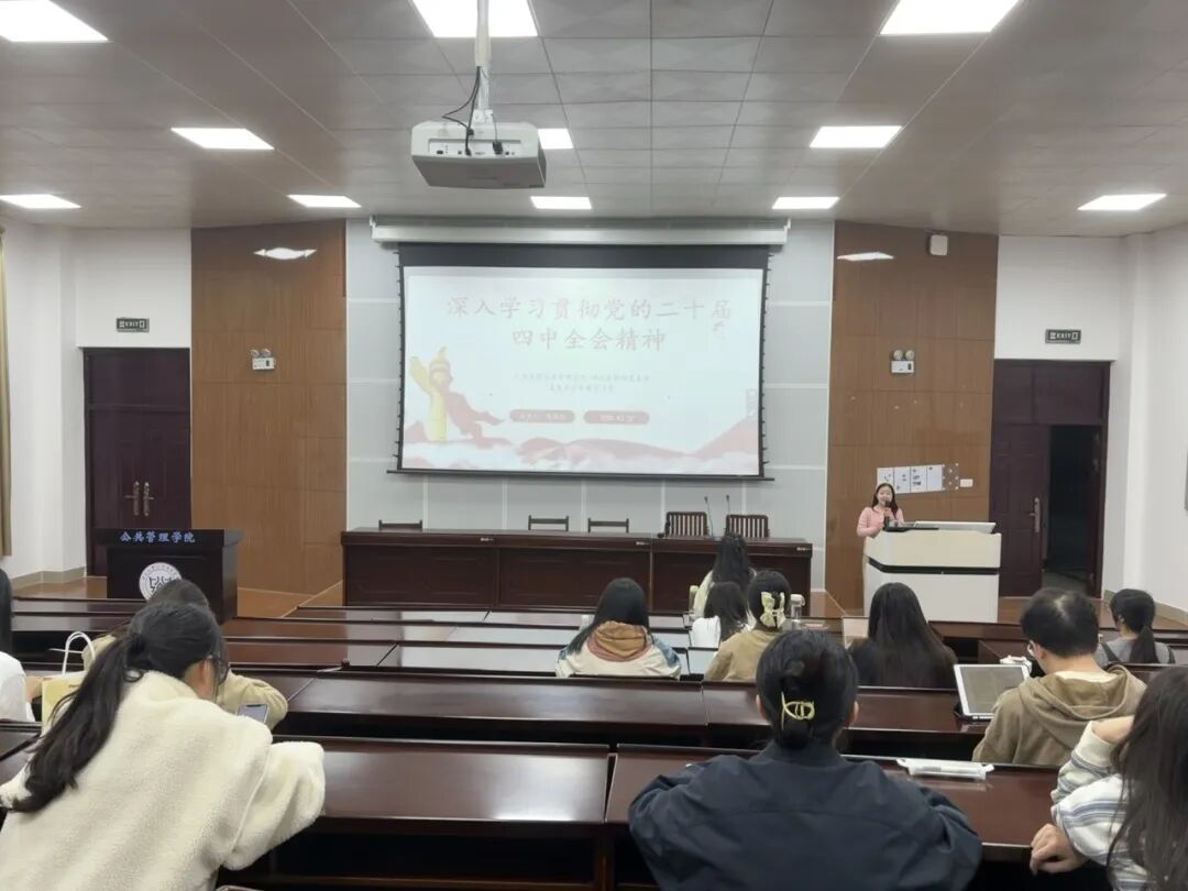 为深入学习贯彻党的二十届四中全会精神,引导支部党员准确把握新时代新征程党的使命任务,12月10日,无码影片 研究生第四党支部召开支部大会,举行“深入学习贯彻党的二十届四中全会精神”专题学习会。会议由支部书记韦程瑶同志主持,通过“领学+观映+研讨”三位一体的学习模式,推动精神内核入脑入心。